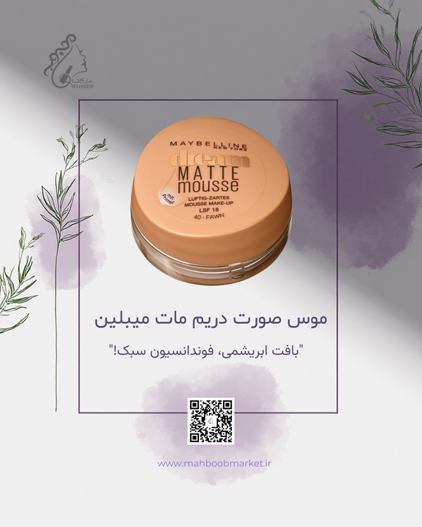 اگه دوست داری پوستت مات، یکدست و مخملی دیده بشه، بدون اینکه حس سنگینی کرمپودرهای کلاسیک رو داشته باشه، موس دریم مات میبلین دقیقاً همون انتخاب امن و امتحانپسدادهست. بافت موسمانند و هوادارش خیلی راحت روی پوست مینشیند، سریع فید میشود و کمک میکند منافذ باز و ناهماهنگیهای رنگ پوست کمتر به چشم بیاید. این فونداسیون بیشتر برای آرایشهای روزانه و نیمهمات طراحی شده و ظاهر طبیعیتری نسبت به کرمپودرهای سنگین ایجاد میکند.
