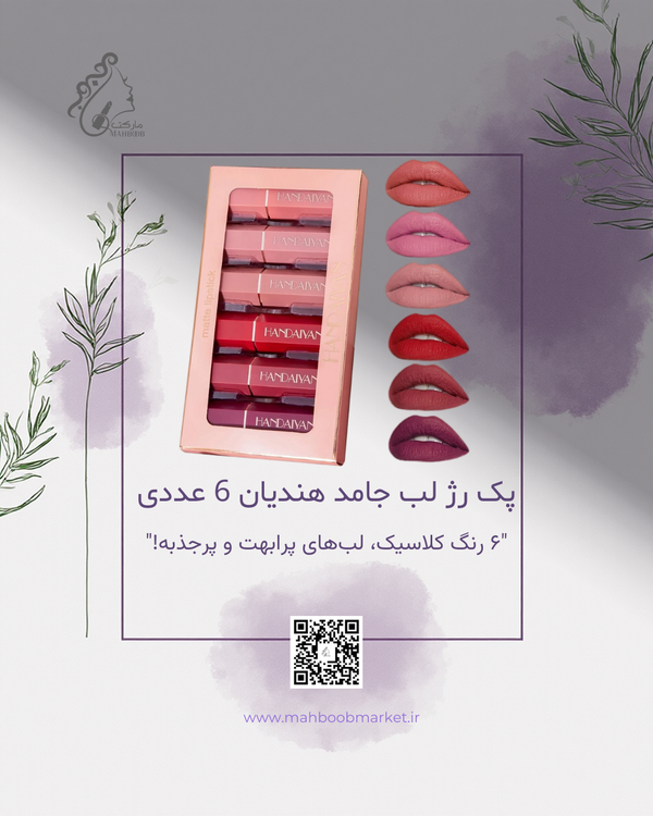 پک رژ لب جامد هندیان ۶ عددی شامل ۶ رنگ کلاسیک، پرکاربرد و ترنده که از نودهای شیک تا قرمز و زرشکی جذاب رو پوشش میده. بافت جامد این رژها باعث میشه کنترل بیشتری موقع استفاده داشته باشی و رنگها یکدست، تمیز و مرتب روی لب بشینن. انتخابی عالی برای آرایش روزانه، محل کار و مهمونیهای جمعوجور.