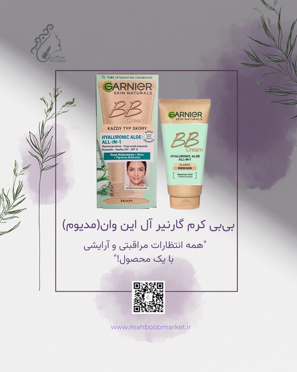 بیبی کرم Garnier مدل All-in-One با فرمول حاوی هیالورونیک اسید و آلوئهورا، ترکیبی از مراقبت پوستی و آرایش سبک روزانه را در یک محصول ارائه میدهد.